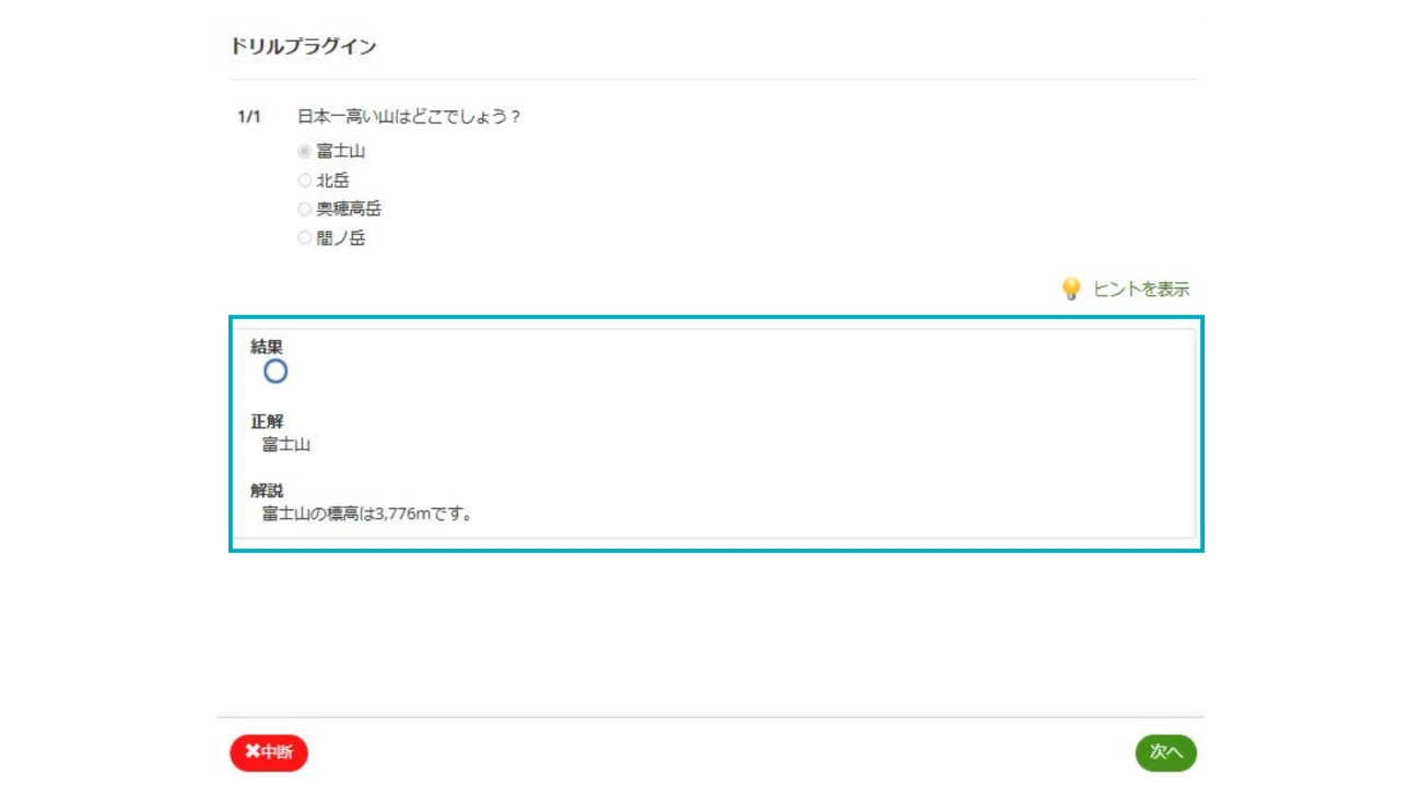 新たに追加された「ドリルプラグイン」は、一問一答形式で問題を解きながら学習を進めることができる機能。単一選択・複数選択・穴埋め問題に対応し、ヒント表示や即時フィードバック、解説の提示が可能である。教員は制限時間の設定や、CSVファイルを使った問題の一括登録も行える。学習結果は統計データとして集計され、受講者ごとの理解度を把握することができる。