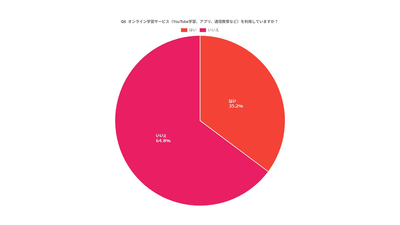 YouTube学習やアプリ、通信教育といったオンライン学習サービスを利用しているかを尋ねたところ、「利用している」という回答は35.2%となっている。