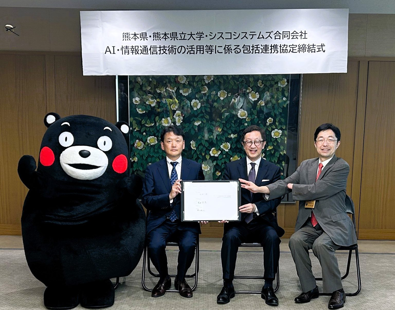 シスコシステムズは、熊本県および熊本県立大学と、AIやICTを活用したIT人材育成をはじめ、地域社会の発展および熊本県全体の生活の質向上を目的とした連携協定を、10月7日付で締結した。