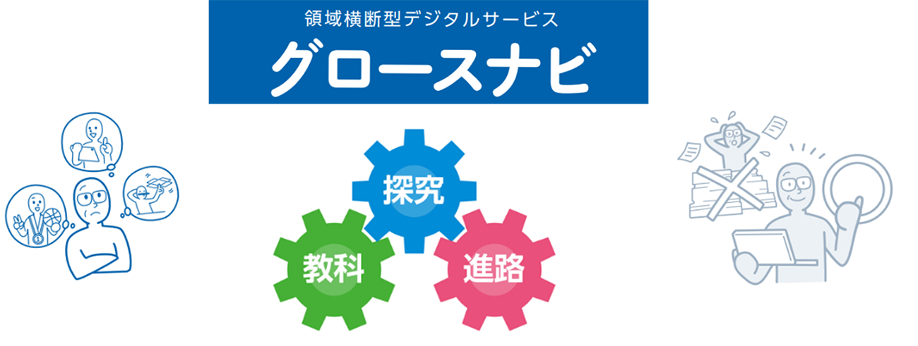 「グロースナビ」は、ベネッセの「探究」「進路」「教科」に関する各種教材・サービスが活用できる、生徒・教員向けのオールインワンプラットフォーム。