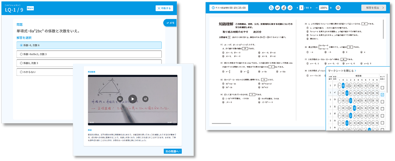 生徒向けコンテンツとしては、個々の主体的な学びを支援するデジタル教材などのパッケージを提供する。個人の関心に応じた「探究」プログラムで生徒の興味関心を引き出して、「進研模試」をはじめとしたアセスメント・教材・進路情報によって目標設定を支援する。目標に応じた学習には、通信講座「進研ゼミ」素材を活用した自学自習用教科学習コンテンツや、CBT形式のテストといった、個別最適化した教材を提供していく。