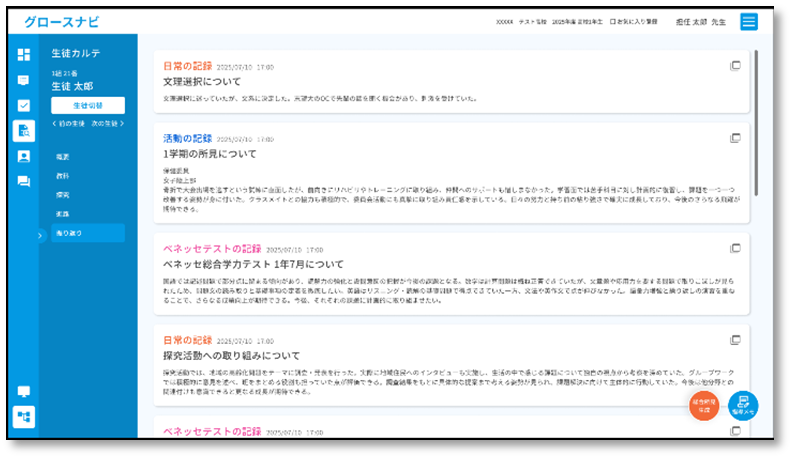 教員向けコンテンツとしては、生徒のより深い「見取り」と、生徒への最適な声かけを活かした対話ができるようになる環境づくりをサポートする。具体的には、生徒たちの学習データを蓄積した教員用画面にて、1人の生徒の学びのプロセスと結果を統合的に見取れるようにする。そのほか、指導準備の事務的な負荷を減らすべく、AIを活用したサポート機能となる学内外の活動・進路探究などの振り返りを蓄積可能な「ポートフォリオ機能」や、記載されたポートフォリオなどの結果から指導要録の総合所見欄を自動生成する「要録自動生成機能」も提供していく。