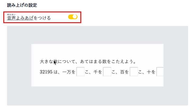 なお、小学生漢字と中学生国語、数学や理科などで使われる数式などは読み上げの対象に含まれない。また、読み上げ音声は読み間違いや不自然な箇所が存在する場合がある。