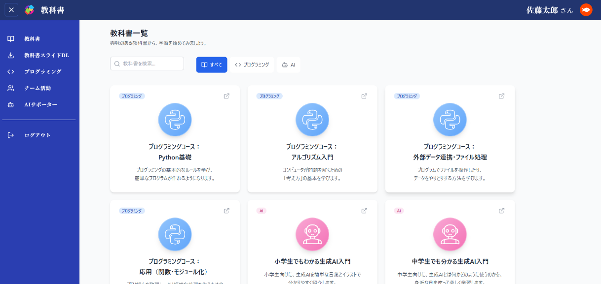 小中高、それぞれのレベルに合わせた教材を用意