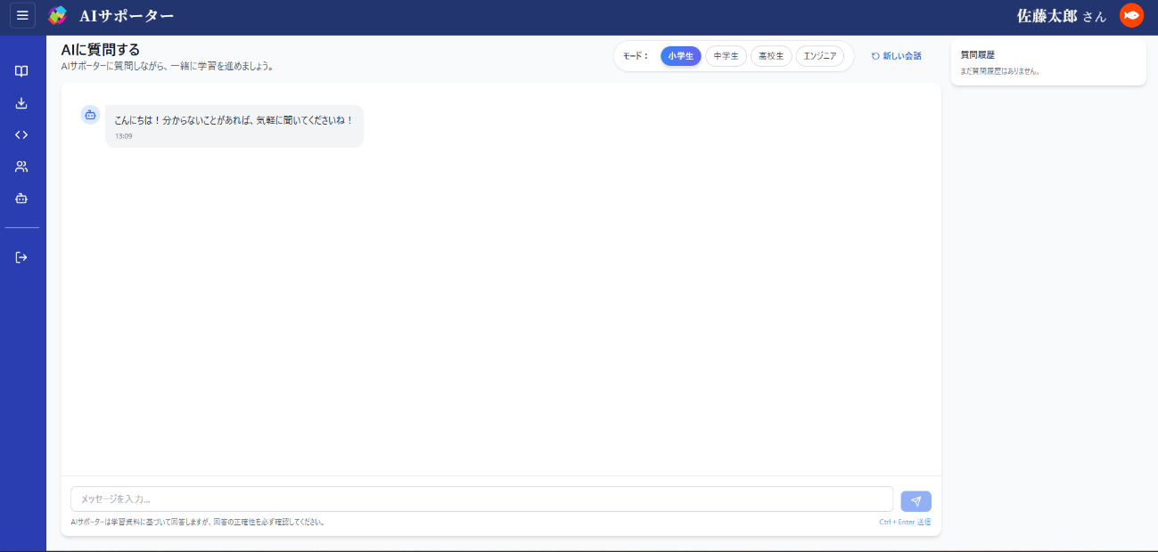 小中高のレベル別に生成AIチャット機能を実装