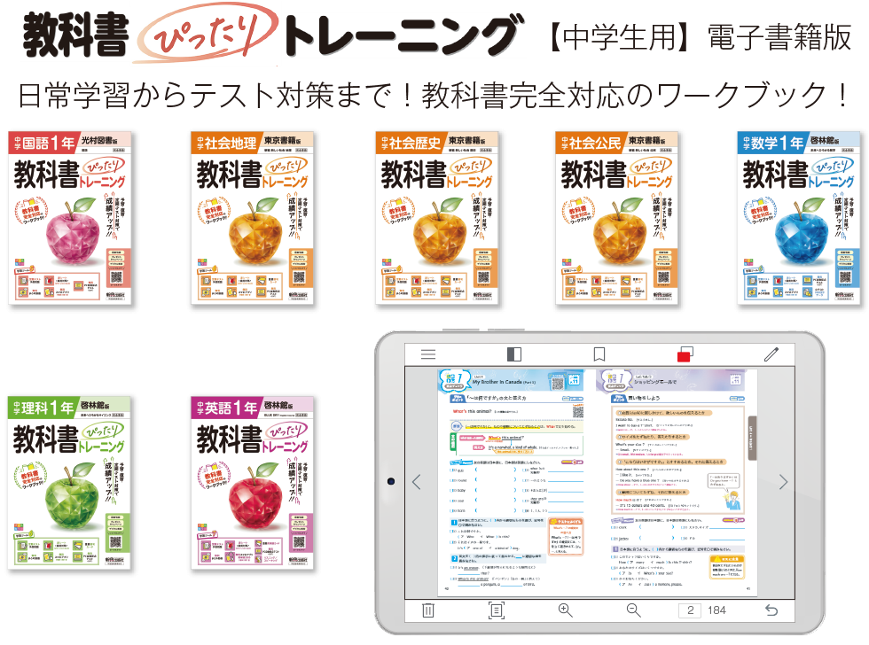 新興出版社啓林館は、中学生用教科書準拠版商品『教科書ぴったりトレーニング』『定期テスト ズバリよくでる』の電子書籍を、2026年1月に発売する。販売は、日教販が開発した販売システムからのみとなり、個人の場合は「学参ドットコム」から購入できる。