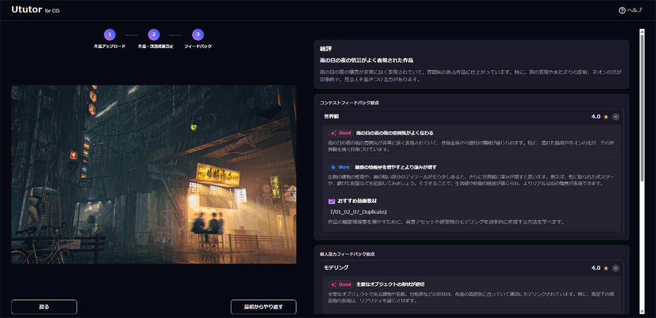 また、同学では、学習者が制作した作品をもとに客観的な評価や改善提案を行う、クリエイティブ教育特化型の壁打ちチューターAI「Ututor」を導入。導入の目的は、グラフィックデザイン、WebUIデザイン、CG、動画といった制作プロセスを支援して、学習効果を高めることにある。学生の課題作品に対してAIが評価と学習アドバイスを提供することによって、クリエイティブ領域におけるAI活用を推進し、個別最適化された学びを実現するという。