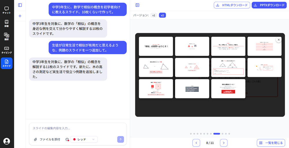 なお、「スタディポケット for TEACHER」の主な機能としては、入力された指示文(プロンプト)から6〜15ページのスライドを自動生成できる「AIスライド(マジックスライド)」がある。