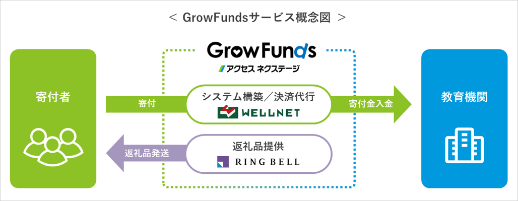 リンベルとアクセスネクステージ、ウェルネットの3社は、教育機関向けの返礼品付き寄付プラットフォーム「GrowFunds」を共同開発し、提供を開始したことを12月18日に発表した。