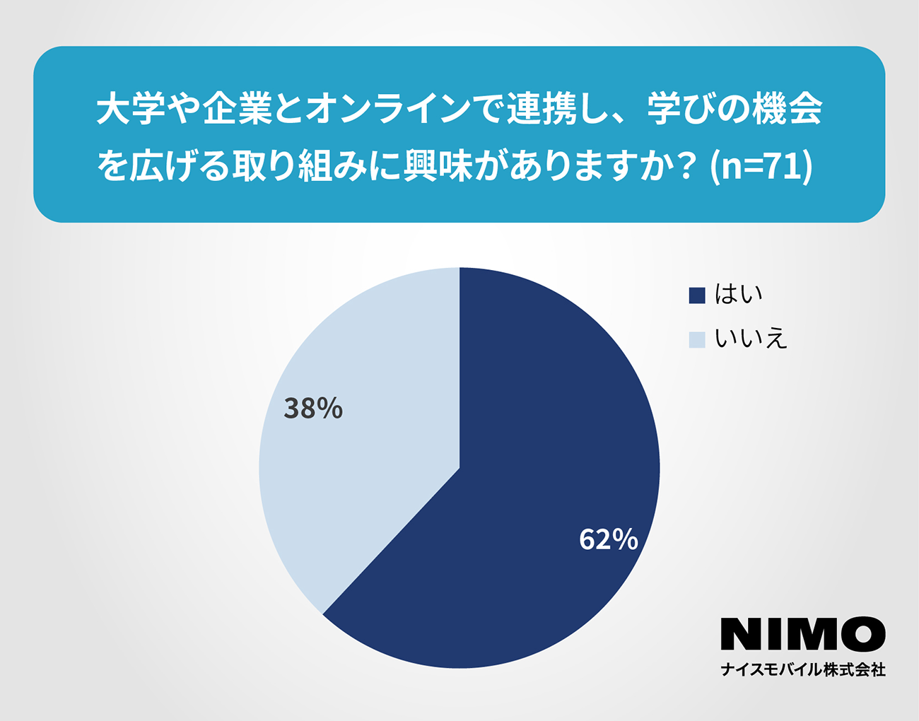 大学や企業とオンラインで連携して、学びの機会を広げる取り組みに興味があるかを尋ねたところ、「興味がある」とする回答が62%を占めた。