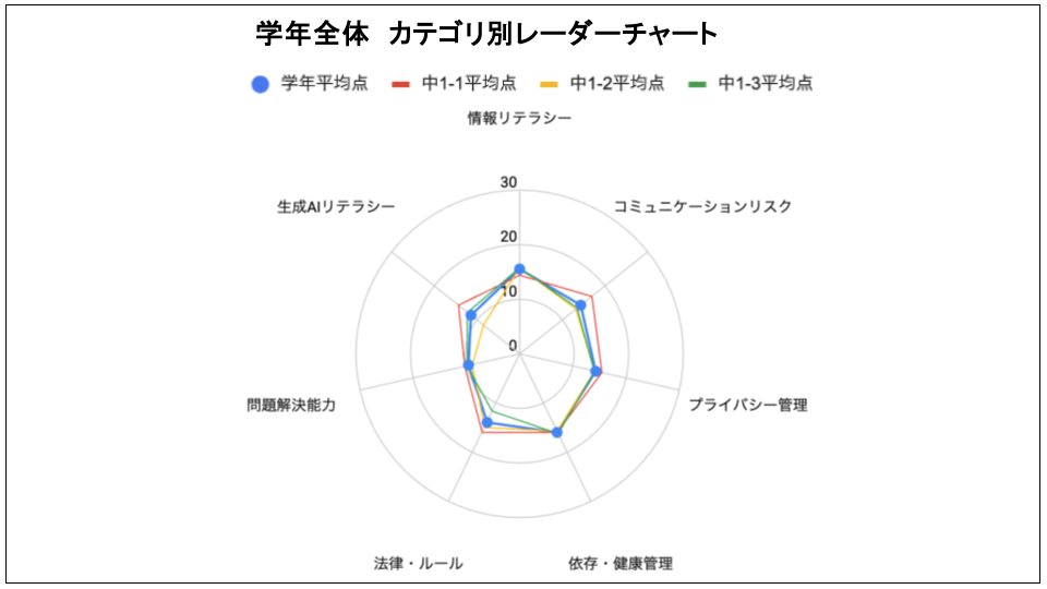 調査設計は、情報科の学習指導要領策定に携わった、早稲田大阪高等学校の米田謙三教諭が監修した。生徒は10分程度でフォームから回答し、情報活用・評価、コミュニケーション、プライバシー、依存・健康、法律・ルール、問題解決、生成AIリテラシーの7つのカテゴリから傾向やリスクをスコア化できる。